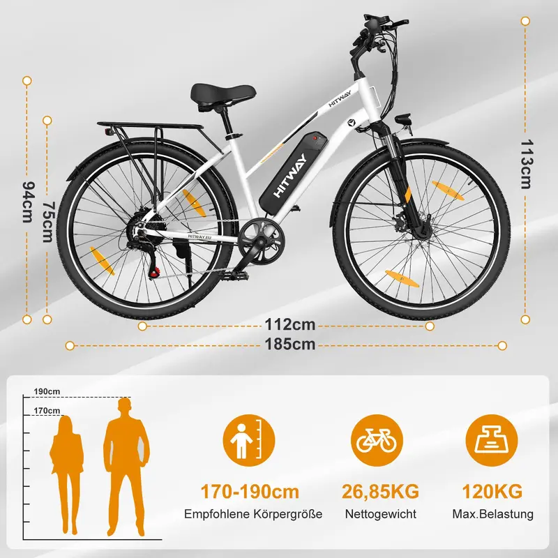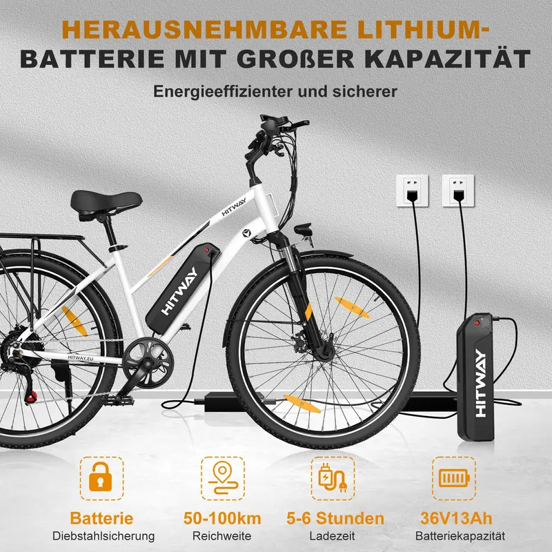 • PERFEKTES STADTRADELN-Dieses elektrische Stadtrad eignet sich nicht nur f??r den taglichen Gebrauch, den Weg zur Arbeit, sondern auch f??r langere Tagesausfl??ge. HITWAY hat sich verpflichtet, Ihnen ein reibungsloses Fahrerlebnis zu bieten und Ihnen die